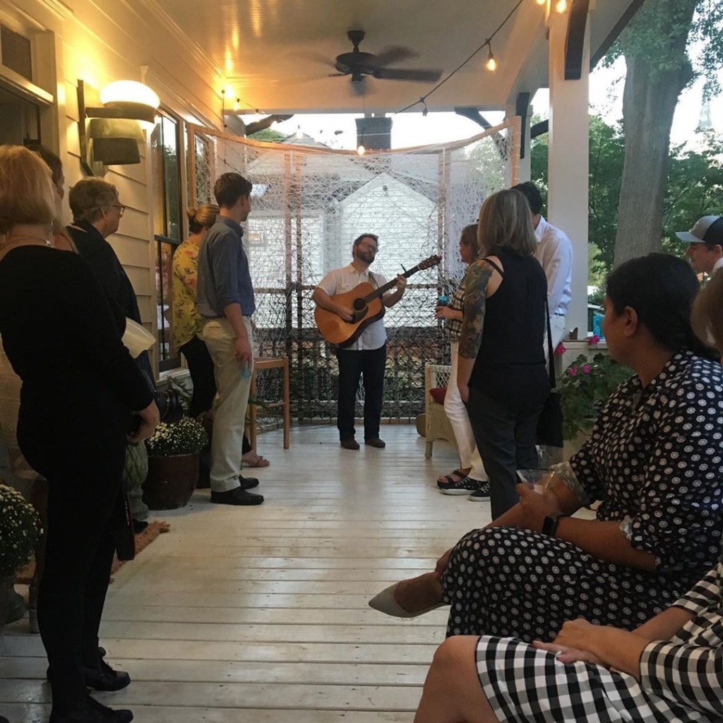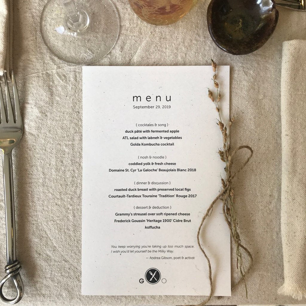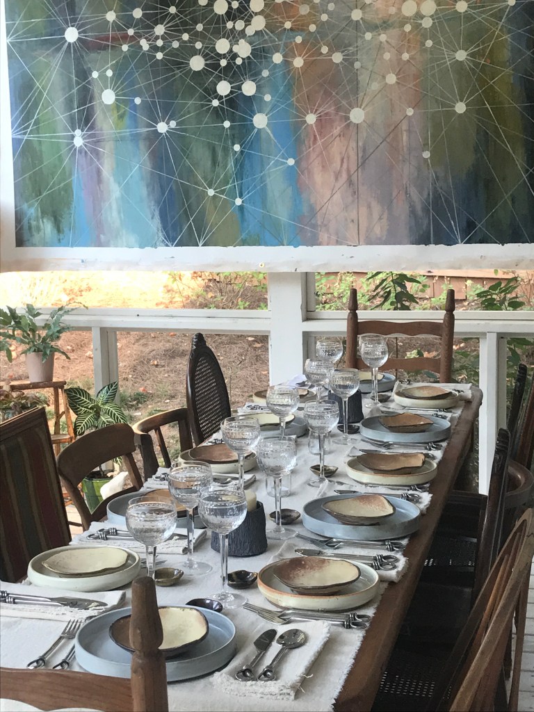 SOLUTION: We selected an evocative topic and a welcoming homestead in the heart of Atlanta, hosting two dozen guests and local artists with live music, great food, and curated discussions. Artists mingled with guests during a cocktail hour sponsored by a local wine shop and a small-batch kombucha brewery. Artworks were displayed throughout the venue, and many of the artists’ handmade goods were used to serve the meal or facilitate conversation. A local, up-and-coming chef drew inspiration from the evening’s theme to create a menu featuring ingredients from local farms and his own cheese cave.