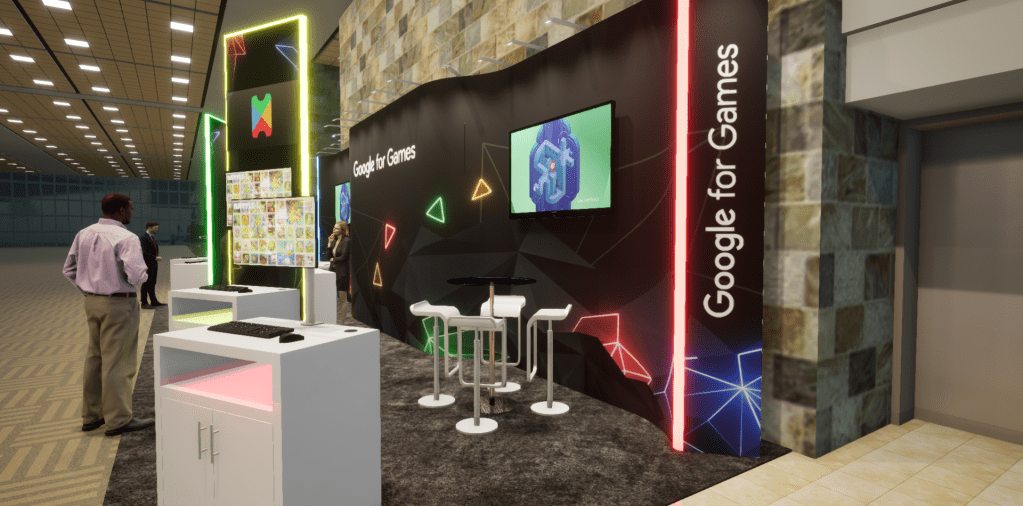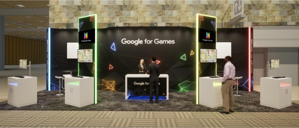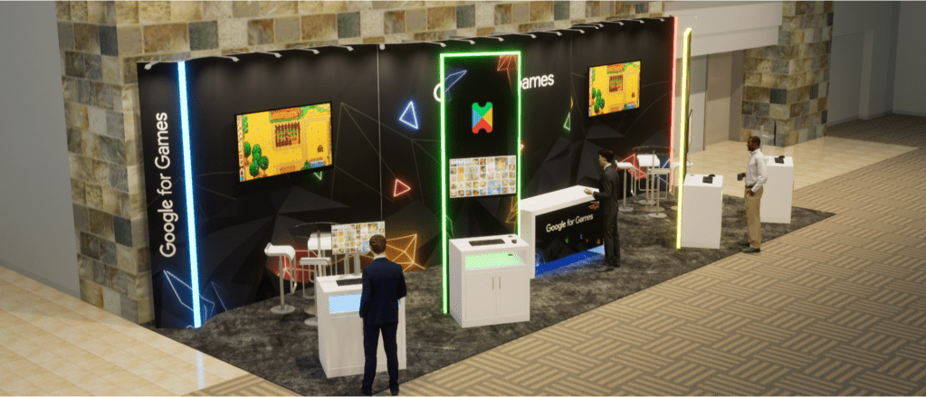 BACKGROUND: Google wanted a substantial exhibit booth at GDC, the world’s largest game developers conference, to showcase the Google for Games brand, platform, and services along with games created by customers.